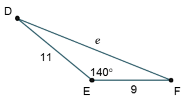 e^2 = 9^2 + 11^2 - 2(9)(11)cos(140)