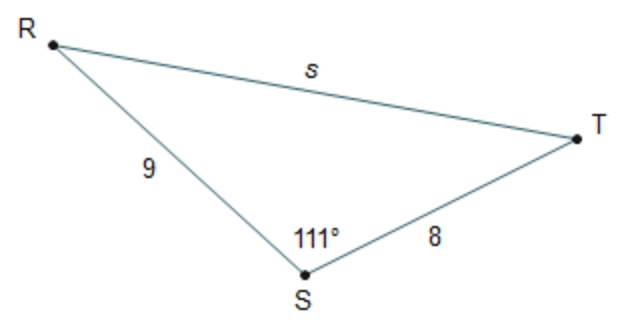 s^2 = 9^2 +8^2 - 2(9)(8) cos(111)