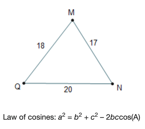 17^2 = 18^2 + 20^2 - 2(18)(20) cos(Q)