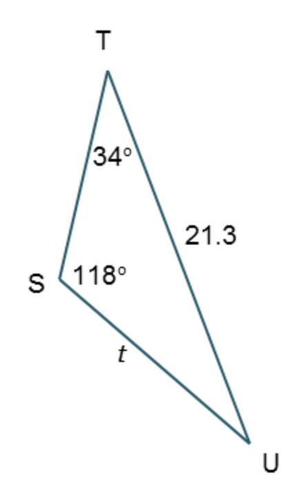 Determine the value of t using the law of sine. Round your answer to the nearest whole number.