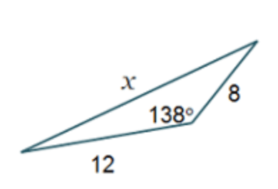 x^2 = 8^2 + 12^2 - 2(8)(12)cos(138)