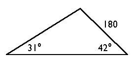 Respuesta: El ángulo se puede obtener con el teorema de la suma de los 3 ángulos de un triángulo y el lado se puede obtener con la ley de senos ya que se conoce un ángulo y su lado opuesto.