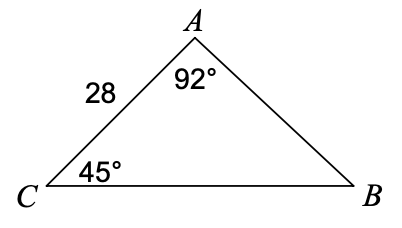 A woman who is 5 feet tall looks up at a tree with an angle of elevation that is 45°. If she is 17 yards away from the tree, how tall is the tree?