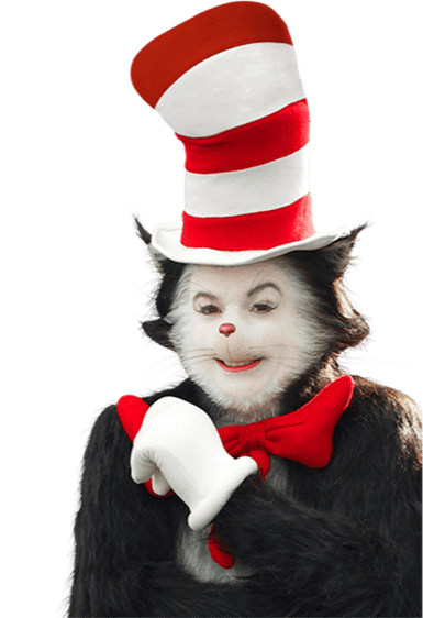 This movie is about a brother and sister who get their lives turn upside down by a large animal who wears a red and white hat.