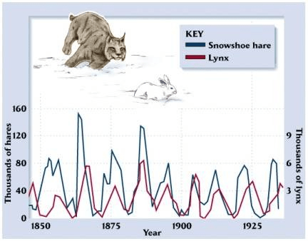 This is the delicate balance between two populations, such as the lynx and the snowshoe hare.