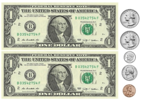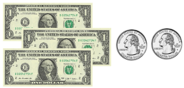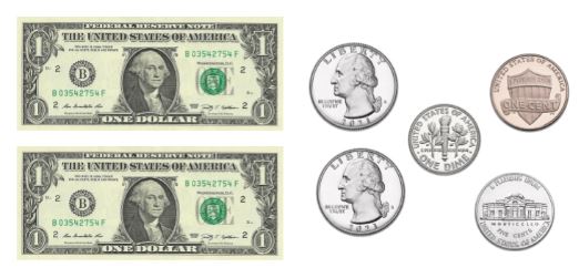 Dawson had the money shown. He bought a toy car that cost $3.26. How much change did he get back?