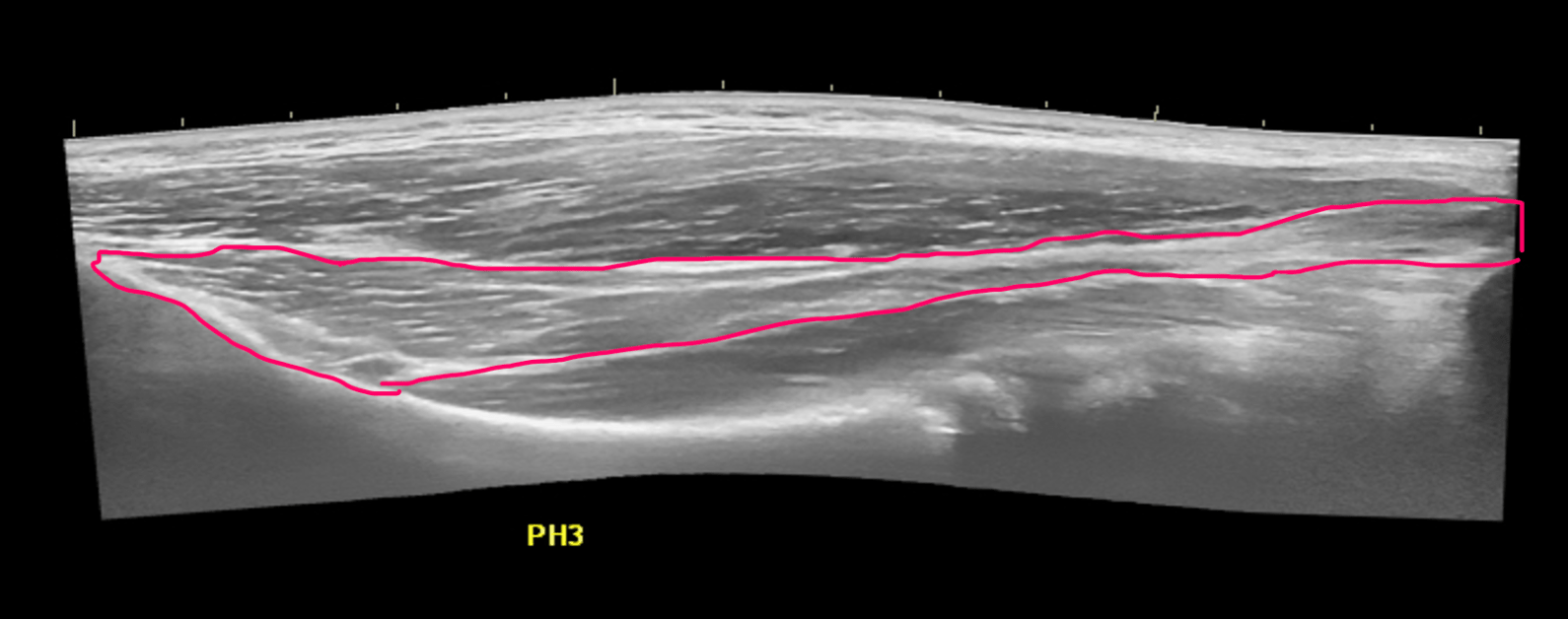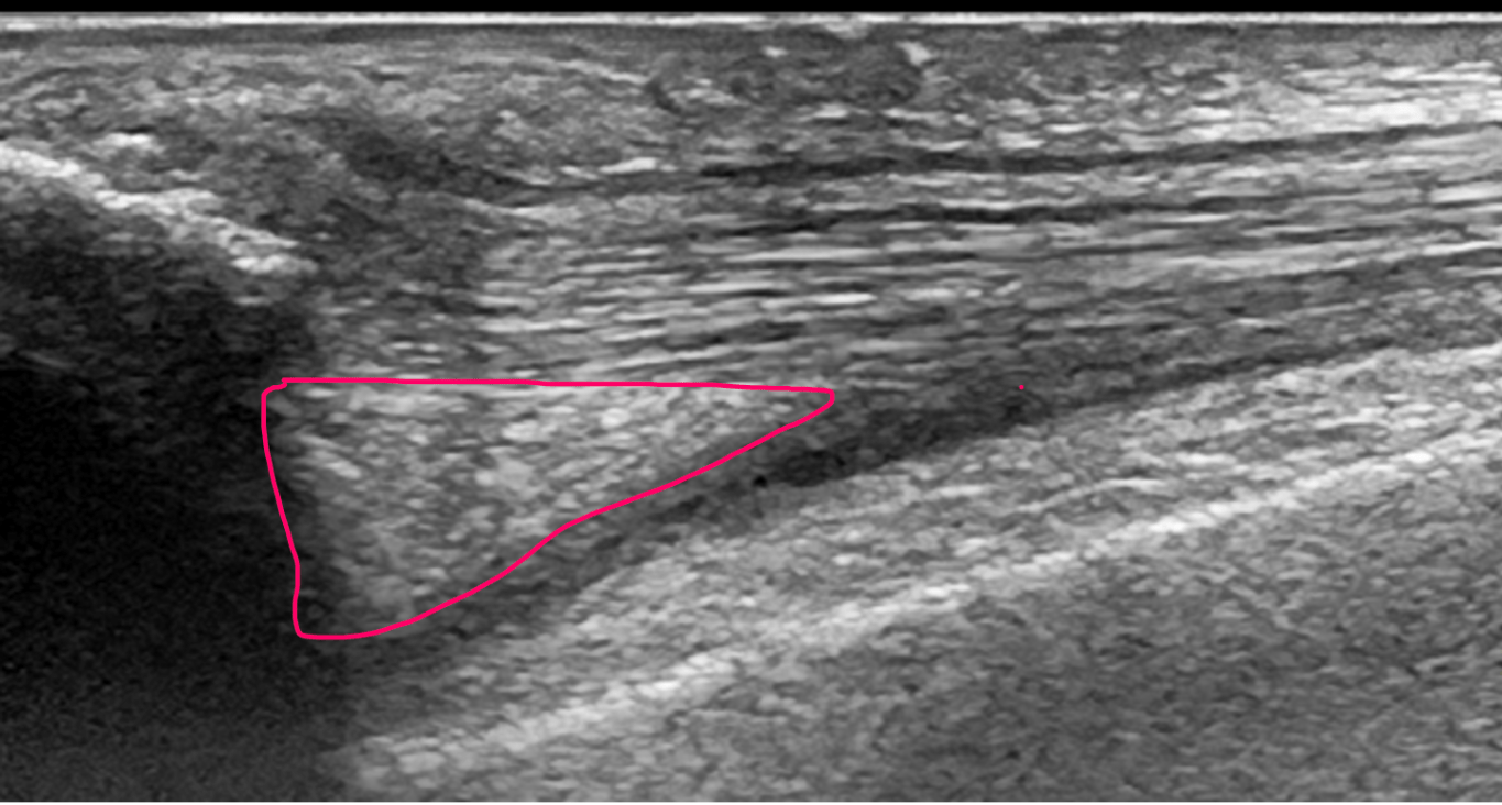 In this extended field of view image the red structure in this well known interval is one of 2 “leaders” for its muscle.