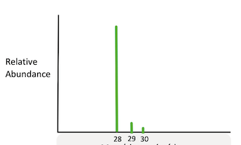 The following image most likely represents an isotope of the element _____________. (x axis is in g/mol)