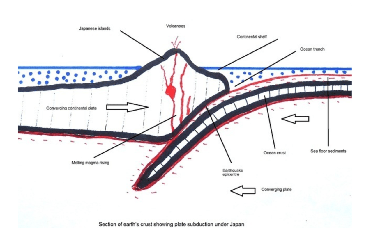 What types of plates and boundary formed Japan?