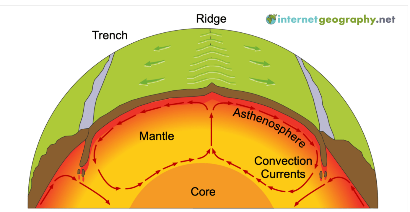 Describe what convection currents are and how they connect to plate tectonics.