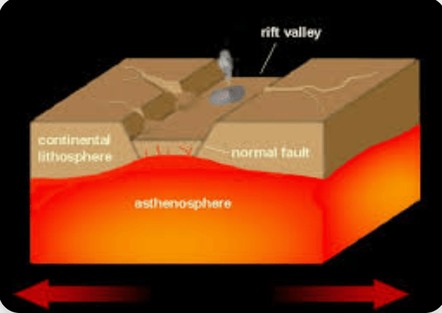 A continental rift valley - a long narrow valley surrounded by cliffs