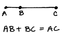 If A, B, and C are collinear points and B is between A and C, then AB + BC = AC?