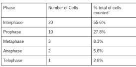 Interphase is the longest phase and the evidence from the table is that 86.85% of the cells are in that stage. The cell spends the least amount of time in telophase, because the percent is 0.50%
