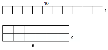 Eliana had 10 tiles to make a rectangular design. She drew a model. Elina then was able to conclude this from the number 10.