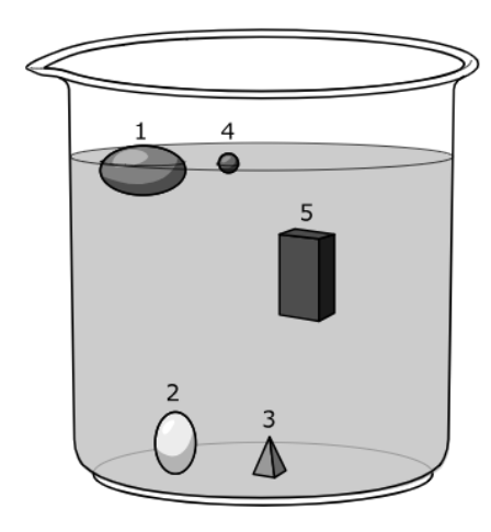 Label each item as either less dense than water, more dense than water, or the same density as water
