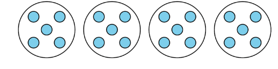 There are 4 stacks of books on the table. Each stack has 5 books. How many books are on the table?