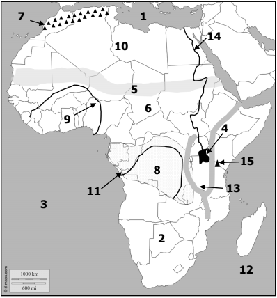 What number is the Atlas Mountains labeled as?