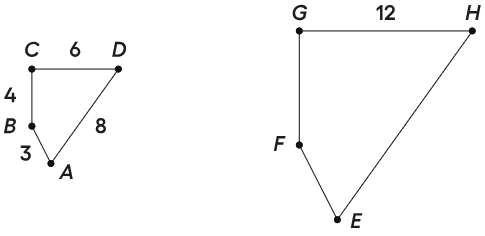 Quadrilateral EFGH is a scaled copy of quadrilateral ABCD. Select ALL true statements.