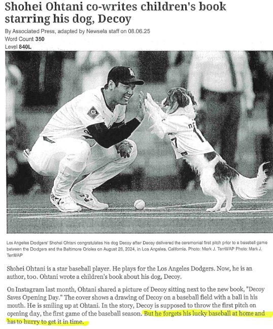 What is: "But he forgets his lucky baseball at home and has to hurry to get it in time" (Associated Press 2).