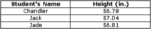 The students in Mrs. Harwood's class measured their height in inches.  The chart shows the heights of three of her students.
