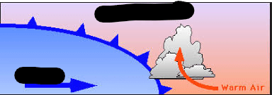 Warm ocean water, Low pressure, hot winds, humid air, convection currents, Coriolis Effect