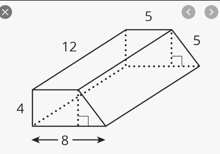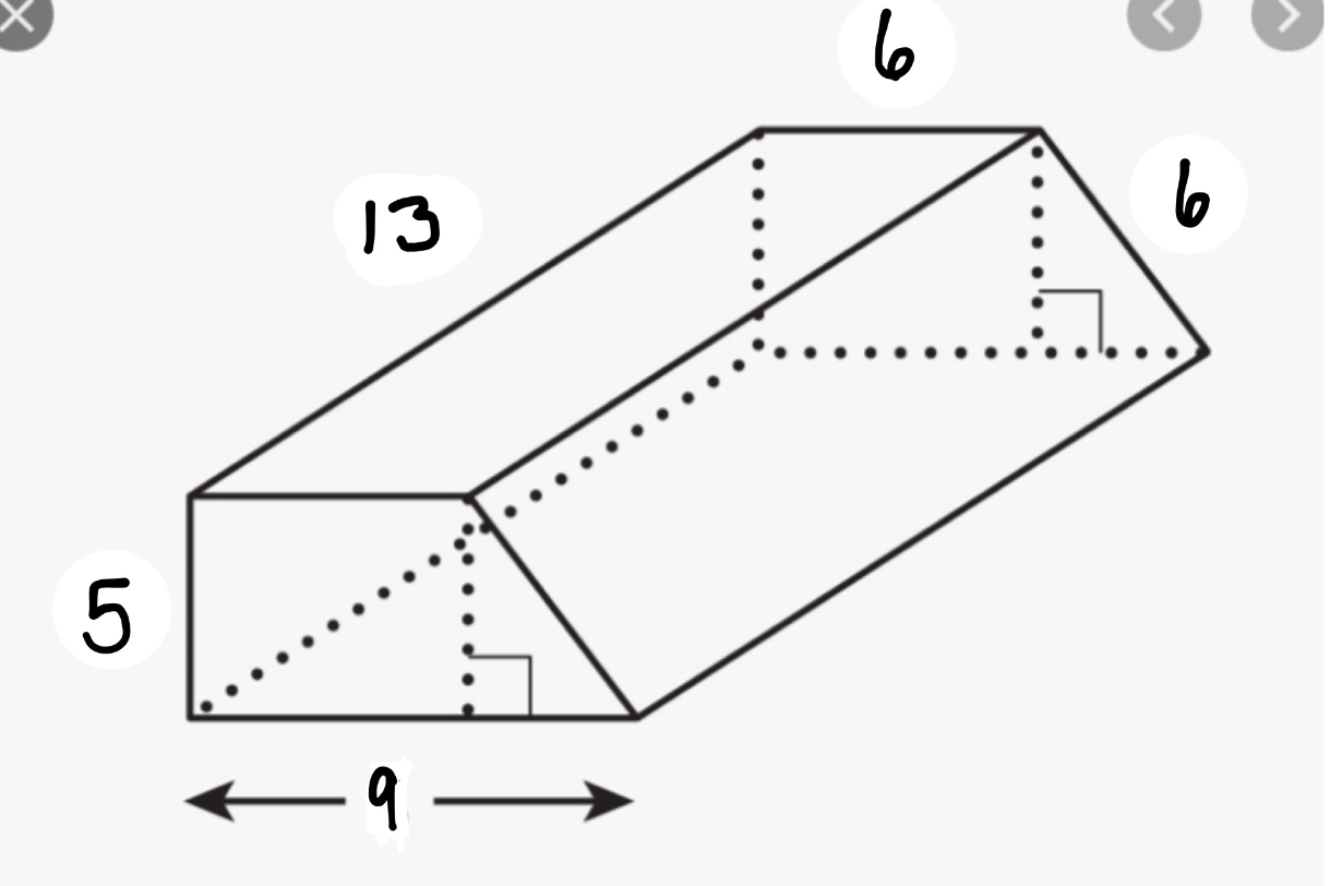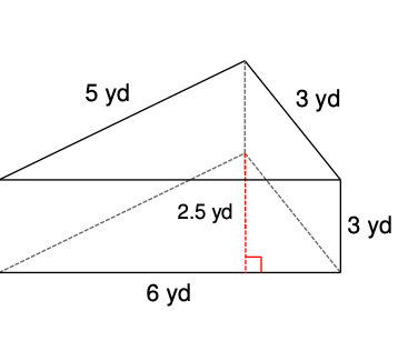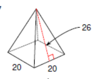 A cross section is cut when a perpendicular plane intersects with the base and goes through the vertex. What is the 2D shape created by the cut and what is the area of the 2D shape?