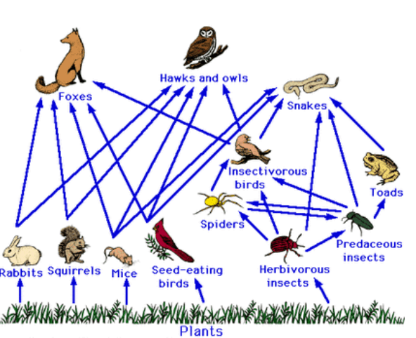 A food web is shown in the diagram below. If the predaceous insects was removed, what would be the long term effects of available energy in the ecosystem?