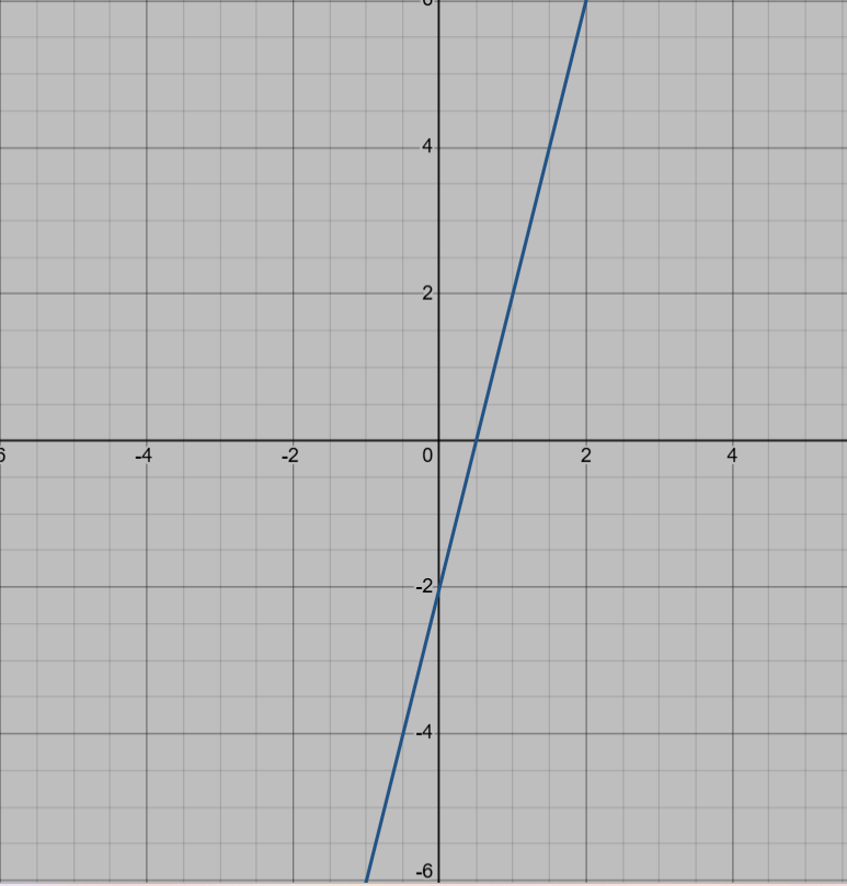 An equation in slope-intercept form with a slope of 4 and an intercept of -2