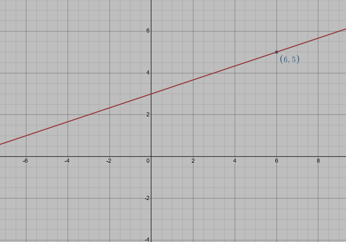An equation in slope-intercept form with a slope of 1/3 that passes through the coordinate point (6, 5)
