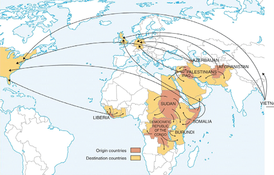 The distribution of destination countries, shown below, best demonstrates: