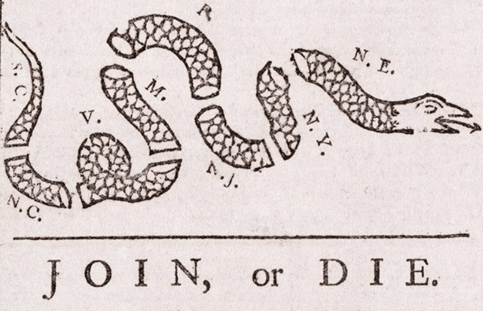 Based on the political cartoon, which conclusion can be drawn about how Franklin felt about the colonies at the time?