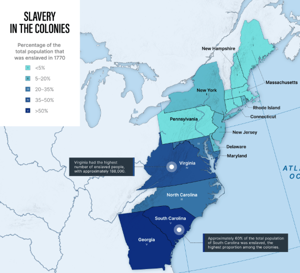 D. its location in the center of the Thirteen Colonies