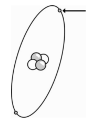 Which statement best describes the part of the atom that is shown by the arrow?