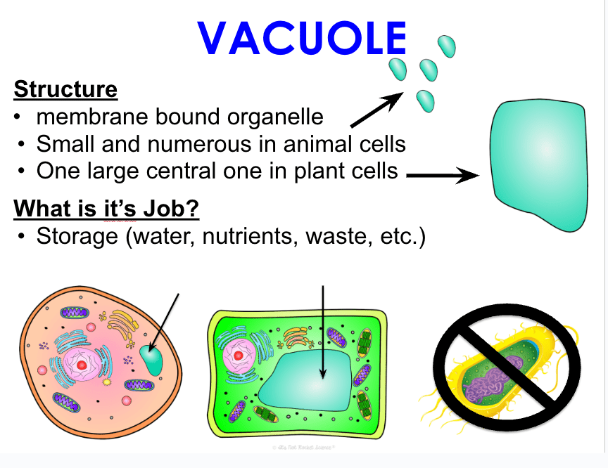 Plant cells have a single central one of these structures while animal ells have numerous small ones.