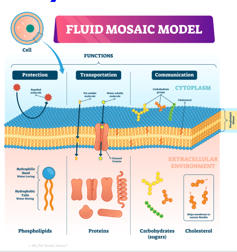 This model explains how the cell membrane is composed of many parts that move around freely AND the 3 biomolecules that make it up