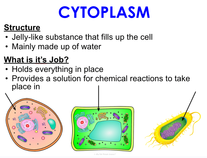 The cellular component that is mainly made out of water and provides a solution for chemical reactions to take place in