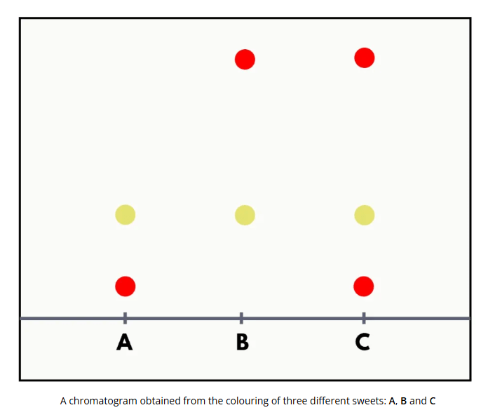 • Least polar → Dye C (highest Rf, moves with non-polar mobile phase)