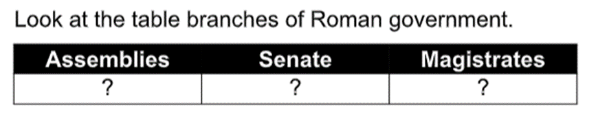 Assemblies: Passed the laws; Senate: Controlled foreign policy; Magistrates: Enforced the law
