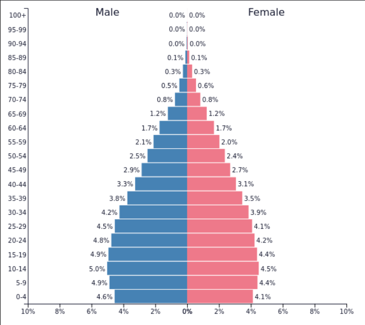 True or false? Population pyramids show a snapshot of the population in a single year (it's not a timeline).