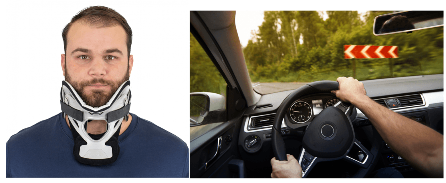Emilio got in a very bad car accident last night. He injured his ___1____ very badly and has to wear a brace. Also, his ____2____ got hurt when he turned the steering wheel too hard.