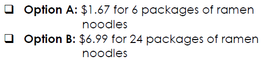 Determine whether Option A or Option B is the better deal. Provide unit rates to support your choice.
