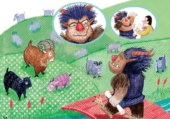 What happens at the beginning of the story The Troll Returns (which happens first)?