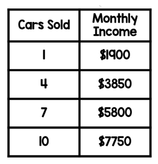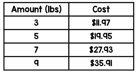 What is the slope of the following table?