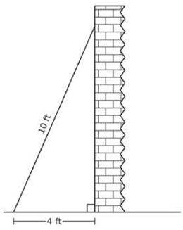 A 10-foot ladder is leaning against a wall. The bottom of the ladder is 4 feet from the wall as shown in the picture. What is the approximate distance from the top of the ladder to the base of the wall?