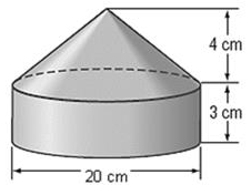 Look at the cylindrical container with a cone shaped lid.  What is the volume of the container with its lid? Hint:  break apart into 2 different shapes.