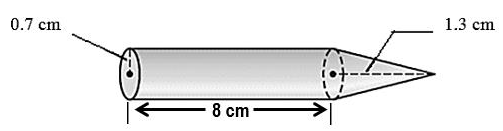 What is the volume of the crayon? The crayon consists of a cylinder with a cone at one end. Use 3.14 for π. Round to the nearest tenth.