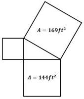 The right triangle has a square adjacent to each of its sides. What is the area of the square on the shortest side of the right triangle?