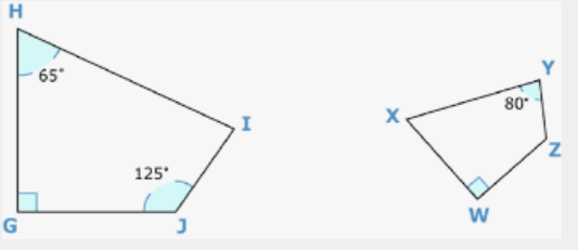In quadrilaterals PQRS and WXYZ, angle Q corresponds to which angle?