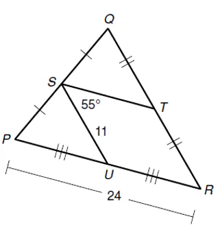 Given mangleUST = 55^o, what is mangleSUR?