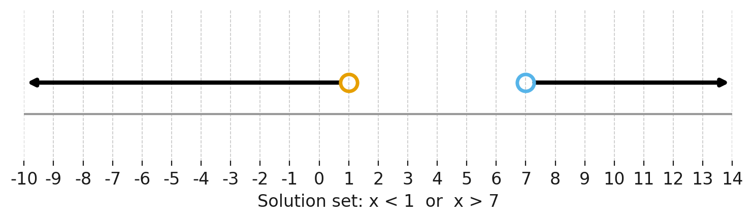 x<1 or x>7 , (−∞,1) or (7,∞)